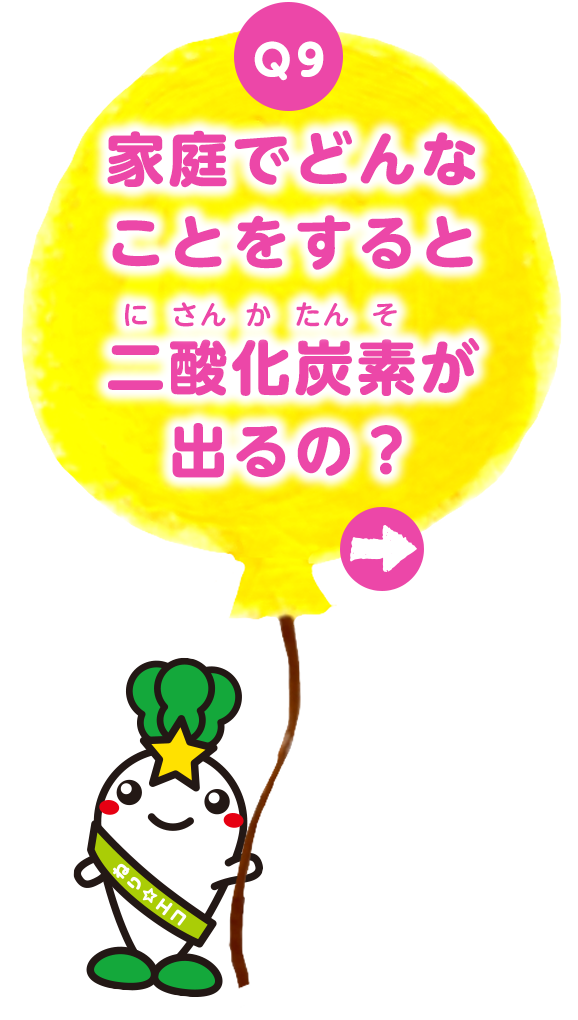 Q9 家庭でどんなことをすると二酸化炭素が出るの?−地球温暖化の対策 その1