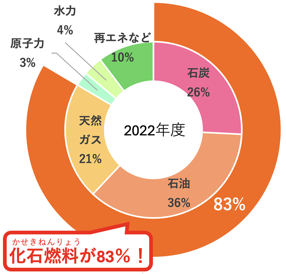 日本で使っているエネルギーの多くは、今も、石炭や石油などの化石燃料から作られています。