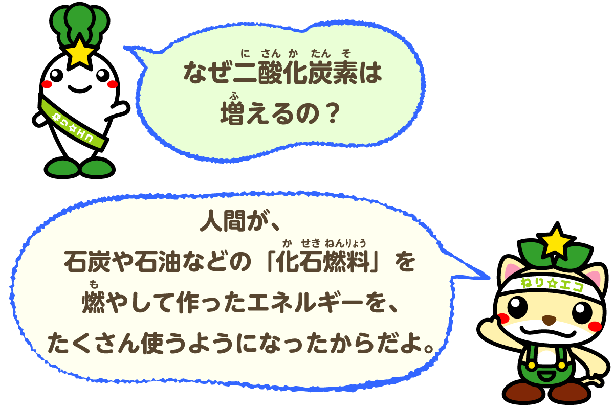 二酸化炭素(CO₂)が増えることは、私たちの毎日の暮らしと、深く関係しています。