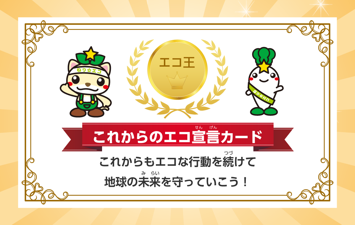 • 地球温暖化を防ぐために、私たちができることを宣言しよう!